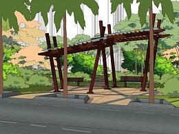 城市公园入口景观建筑SU模型下载_sketchup草图大师SKP模型