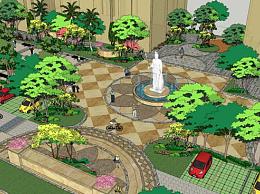 公园景观广场小区广场SU模型下载_sketchup草图大师SKP模型
