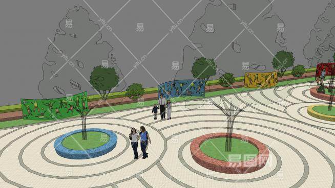 这是小广场公园景观SU模型,公园,古代是指家的园子,而现代一般是指政府修建并经营的作为自然观赏区和供公众的休息游玩的公共区域。小广场公园景观SU模型下载_sketchup图大师SKP模型