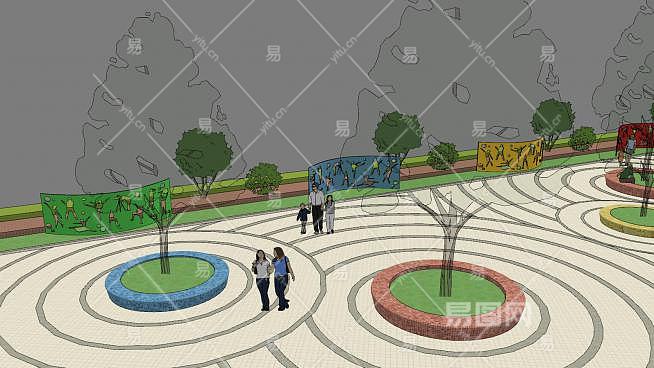 小广场公园景观SU模型下载_sketchup草图大师SKP模型