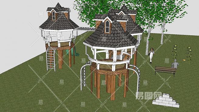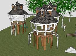儿童公园高架塔滑梯建筑SU模型下载_sketchup草图大师SKP模型