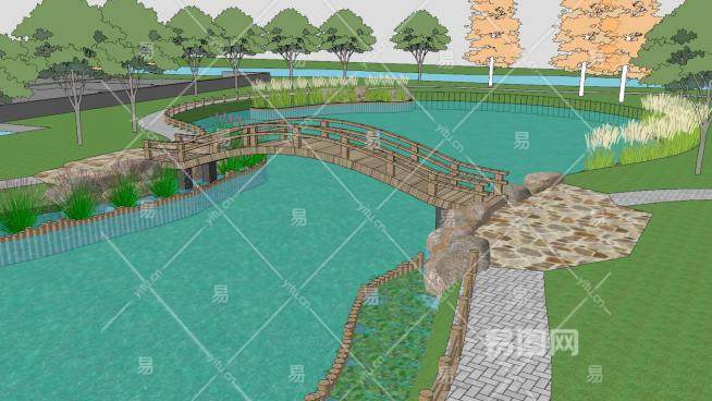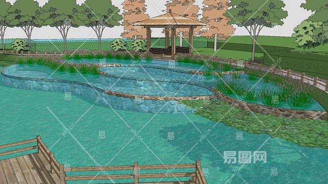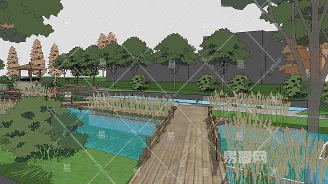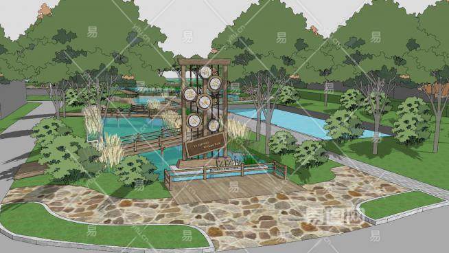 利众湿地公园景观SU模型下载_sketchup草图大师SKP模型