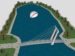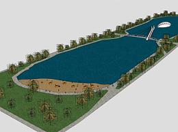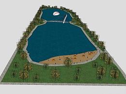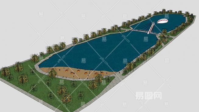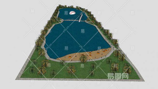 人造沙滩泳池桥园公园SU模型下载_sketchup草图大师SKP模型