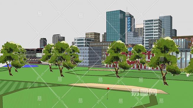 城市建筑公园中心SU模型下载_sketchup草图大师SKP模型