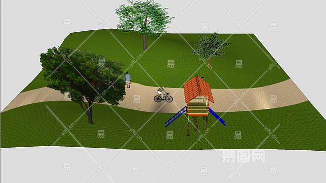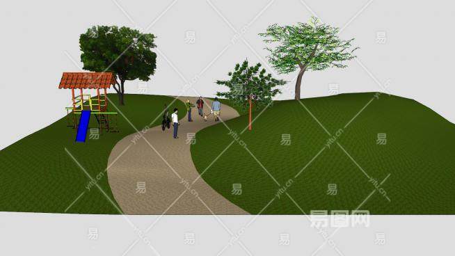 乡村人形步道公园SU模型下载_sketchup草图大师SKP模型