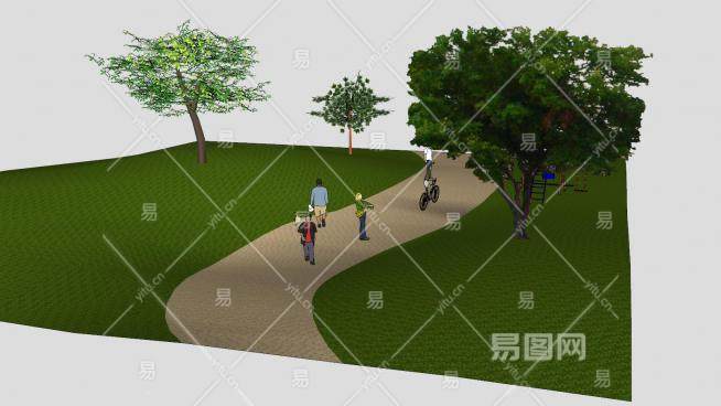 这是乡村形步道公园SU模型,公园是供公众游览、观赏、休憩、开展科学文化及锻炼身体等活动,有较完善的设施和良好的绿化环境的公共绿乡村形步道公园SU模型下载_sketchup图大师SKP模型