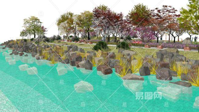 这是河道滨河景观su模型,本设计定位是:依靠优越的理位置、得天独厚的自然条件,打造拥有清新的空气、明媚的阳光、灵气的岸和绿荫的风情。力求保持自然生态,景观造型追求与格局和谐的城市景观带。河道滨河景观su模型下载_sketchup图大师SKP模型