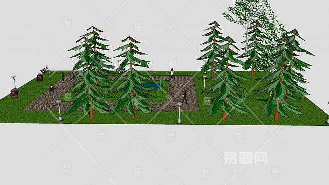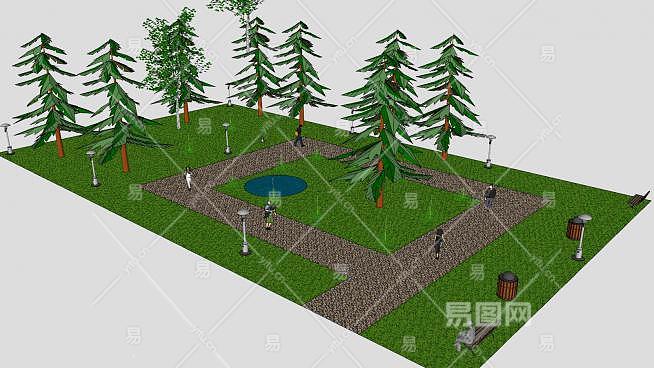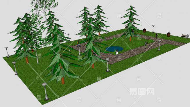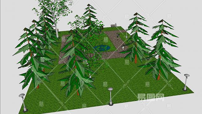 植被公园休闲场地SU模型下载_sketchup草图大师SKP模型
