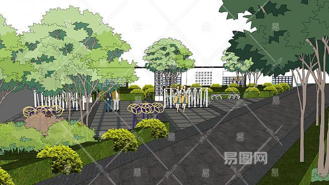这是居民区小游园su模型,小游园可利用城市中不宜布置建筑的小块零星空建造,在旧城改建中具有重要的作用。小游园可以布置得精细雅致,除种植木外,还可有园路、铺和建筑小品等。居民区小游园su模型下载_sketchup图大师SKP模型