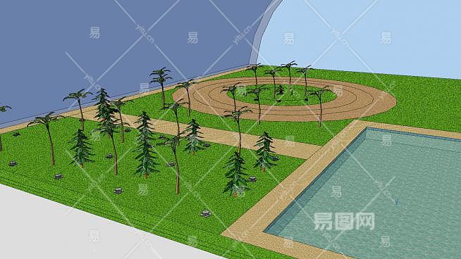 户外泳池绿色公园SU模型下载_sketchup草图大师SKP模型