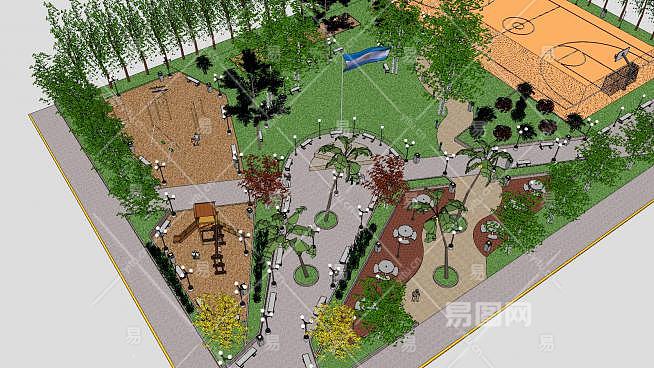这是运动设备休闲公园SU模型,公园,古代是指家的园子,而现代一般是指政府修建并经营的作为自然观赏区和供公众的休息游玩的公共区域。在旅游景点中,通常被简称为"园"。运动设备休闲公园SU模型下载_sketchup图大师SKP模型