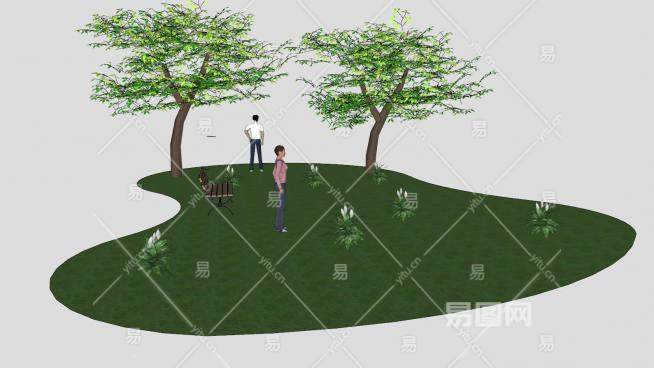 这是小型观景公园SU模型,公园是供公众游览、观赏、休憩、开展科学文化及锻炼身体等活动,有较完善的设施和良好的绿化环境的公共绿小型观景公园SU模型下载_sketchup图大师SKP模型