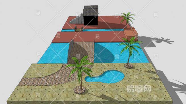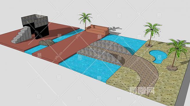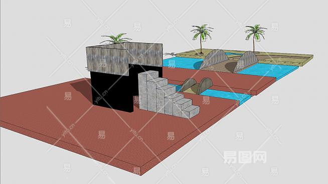 这是现代普通公园SU模型,一个普通的公园,有一个观景塔和一个池塘。现代普通公园SU模型下载_sketchup图大师SKP模型