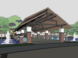 新中式公园廊架景观SU模型下载_sketchup草图大师SKP模型
