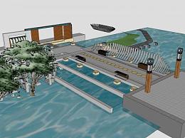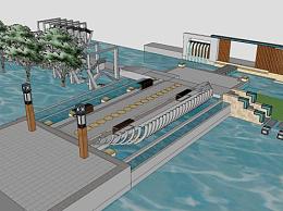 中式园林水景设计SU模型下载_sketchup草图大师SKP模型