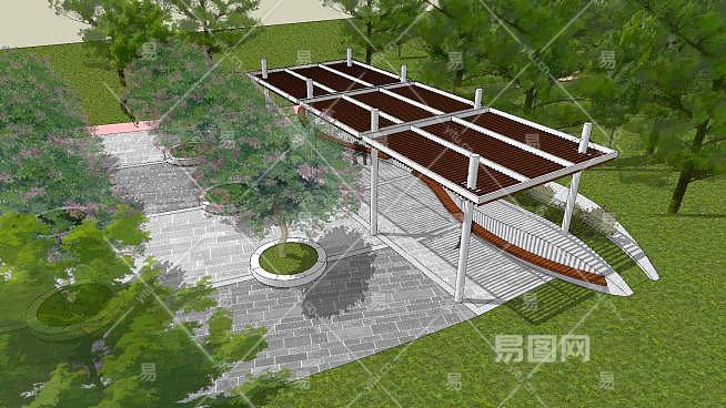这是现代公园廊架设计SU模型,公园,古代是指家的园子,而现代一般是指政府修建并经营的作为自然观赏区和供公众的休息游玩的公共区域。在旅游景点中,通常被简称为"园"。现代公园廊架设计SU模型下载_sketchup图大师SKP模型