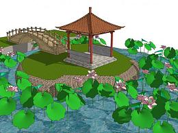 中式荷塘园林景观SU模型下载_sketchup草图大师SKP模型
