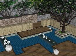 新中式古典泳池设计SU模型下载_sketchup草图大师SKP模型