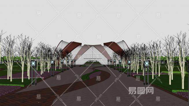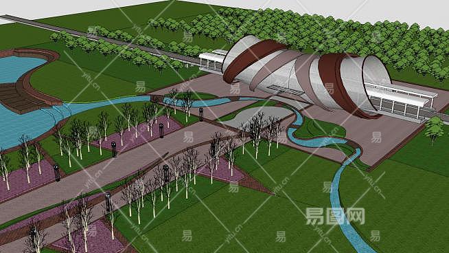 这是现代建筑新中式园林景观SU模型,公园,古代是指家的园子,而现代一般是指政府修建并经营的作为自然观赏区和供公众的休息游玩的公共区域。在旅游景点中,通常被简称为"园"。现代建筑新中式园林景观SU模型下载_sketchup图大师SKP模型
