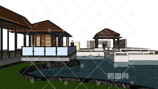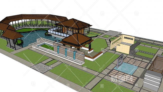 这是新中式公园设计SU模型,公园,古代是指家的园子,而现代一般是指政府修建并经营的作为自然观赏区和供公众的休息游玩的公共区域。在旅游景点中,通常被简称为"园"。新中式公园设计SU模型下载_sketchup图大师SKP模型