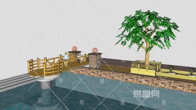 这是现代沿河景观设计SU模型,公园,古代是指家的园子,而现代一般是指政府修建并经营的作为自然观赏区和供公众的休息游玩的公共区域。在旅游景点中,通常被简称为"园"。现代沿河景观设计SU模型下载_sketchup图大师SKP模型