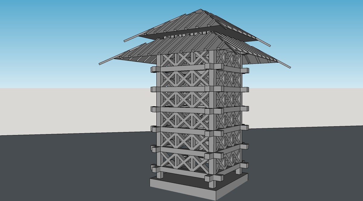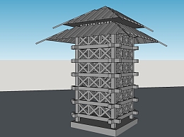 现代抽象小品su模型,从远处看是一个子或者瞭望塔,接近后可以发现是一个景观小品。原创图大师su模型skb模型分享