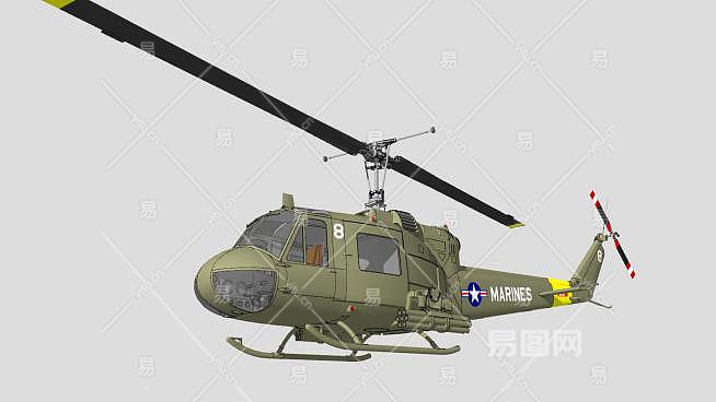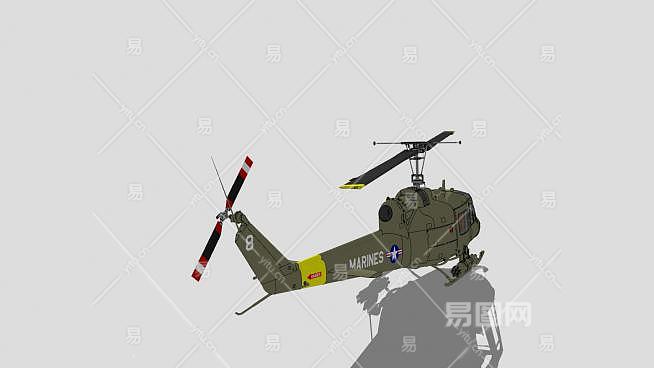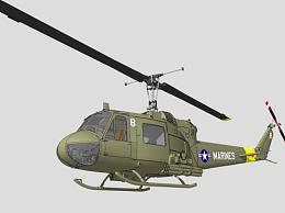 美国UH-1休伊直升机SU模型下载_sketchup草图大师SKP模型