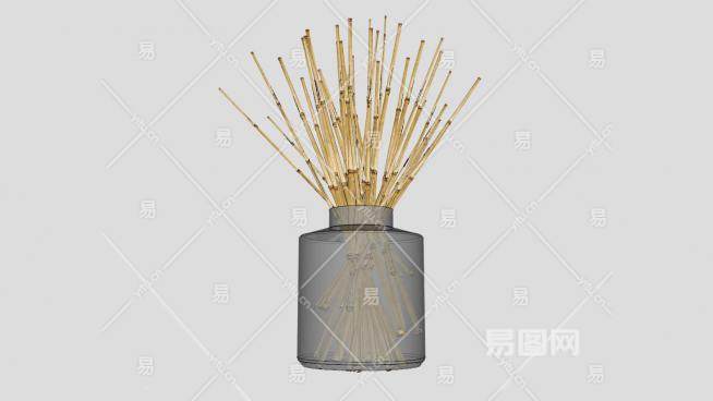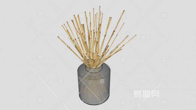 玻璃花瓶枯竹装饰SU模型下载_sketchup草图大师SKP模型