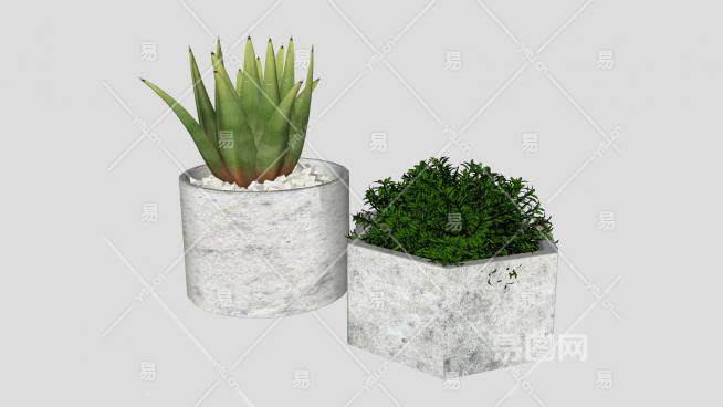 室外砖石盆栽观叶植物SU模型下载_sketchup草图大师SKP模型