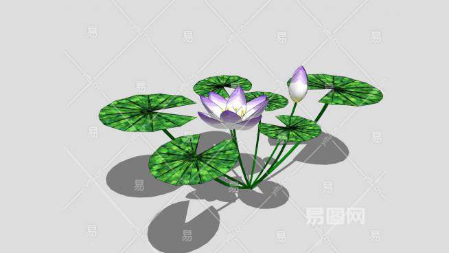 紫色莲花莲叶SU模型下载_sketchup草图大师SKP模型