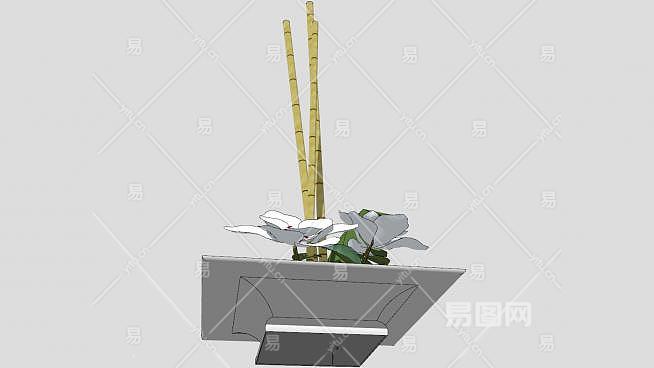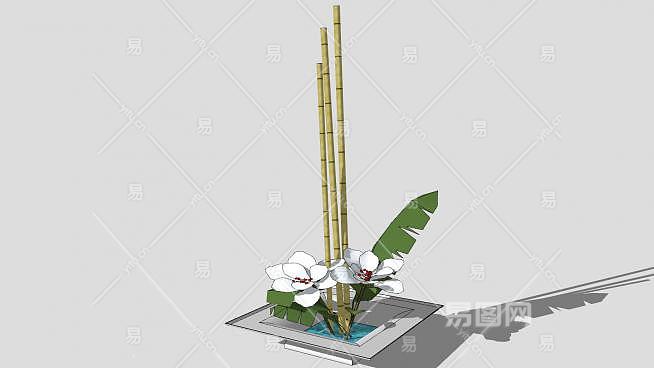 现代花盆竹杆插花SU模型下载_sketchup草图大师SKP模型