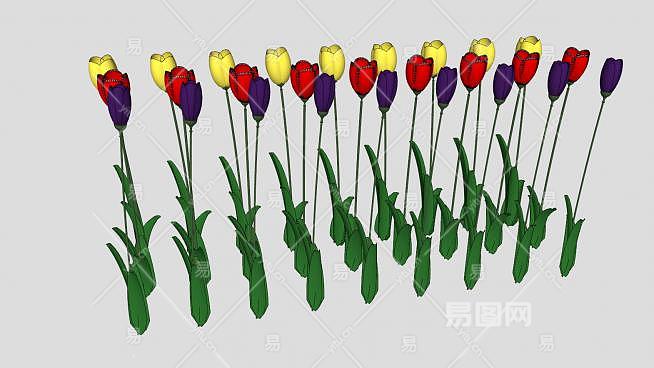 这是三种颜色的郁金香SU模型,郁金香(学名:Tulipa gesnerianaL.)是百合科郁金香属的多年生植物,具球茎。三种颜色的郁金香SU模型下载_sketchup图大师SKP模型