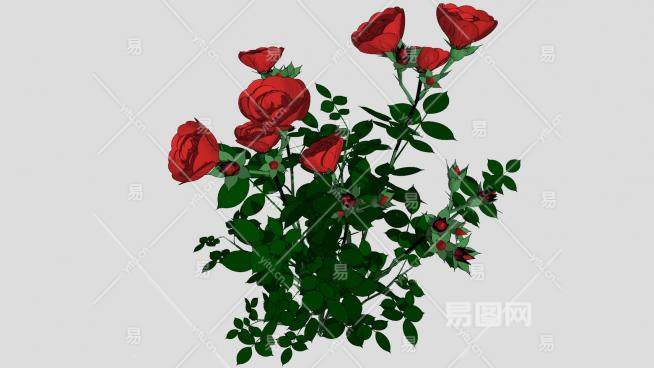 红玫瑰丛SU模型下载_sketchup草图大师SKP模型