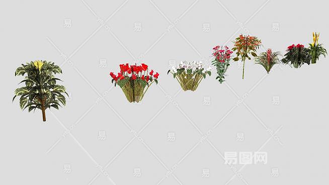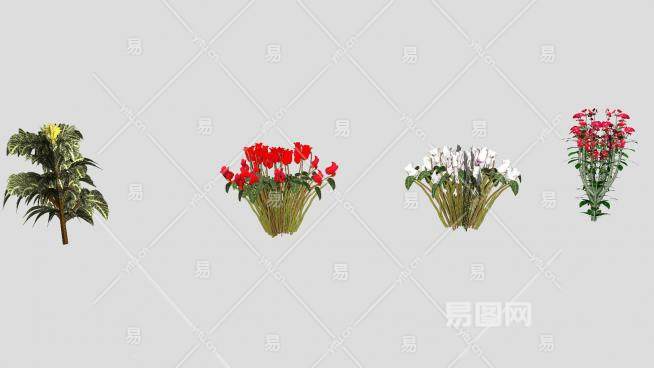 开花植物组SU模型下载_sketchup草图大师SKP模型