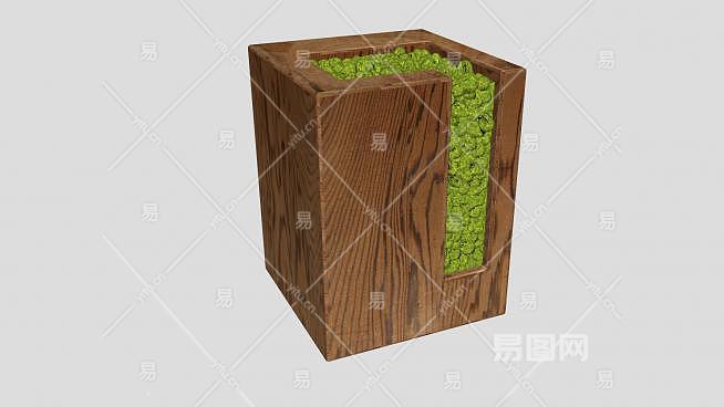 现代木盆栽中的苔藓SU模型下载_sketchup草图大师SKP模型