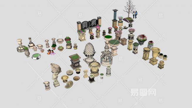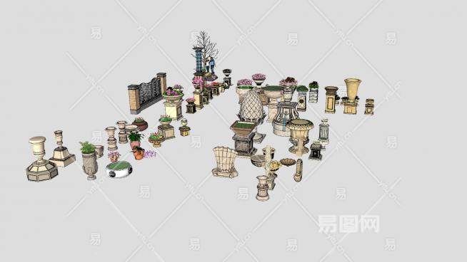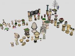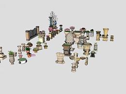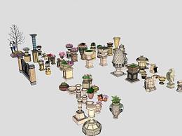 花钵花柱景观欧式小品SU模型下载_sketchup草图大师SKP模型