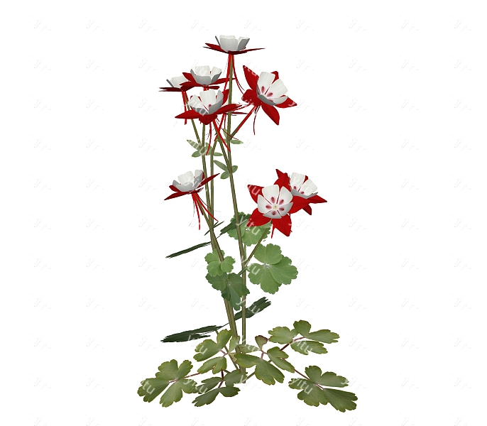 耧斗菜绿植sketchup模型,现代观花植物skp文件下载