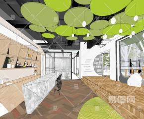 现代绿色元素办公室装修SU模型下载_sketchup草图大师SKP模型