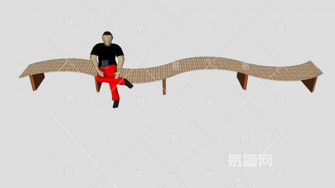 S形的户外长椅座椅SU模型下载_sketchup草图大师SKP模型