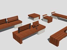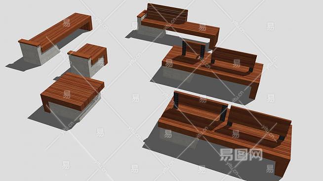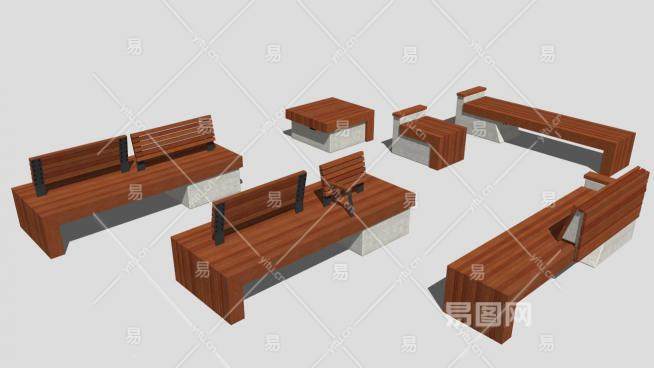 多款木质公园椅SU模型下载_sketchup草图大师SKP模型
