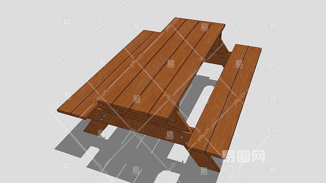公园木制桌椅SU模型下载_sketchup草图大师SKP模型