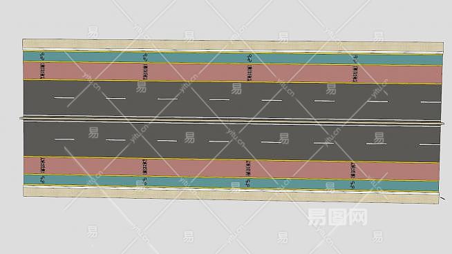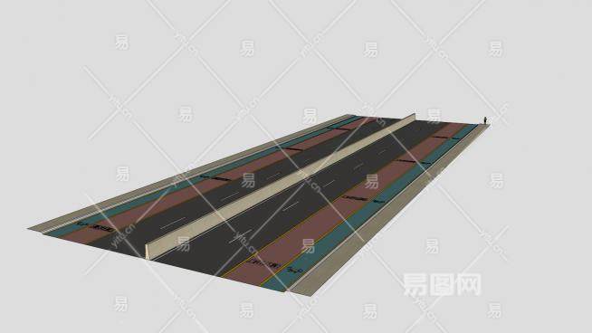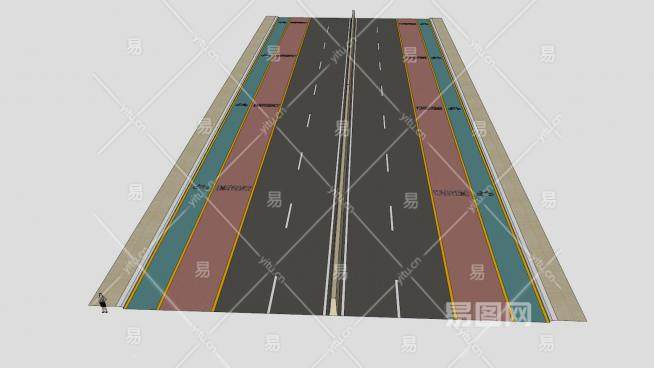 这是国际标准道路SU模型,国际标准道路,设有自行车道和紧急车道。国际标准道路SU模型下载_sketchup图大师SKP模型
