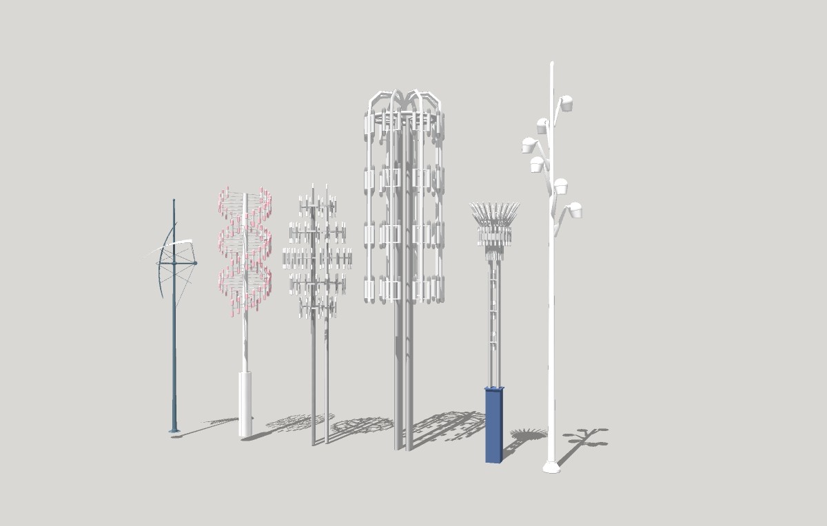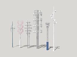 现代创意造型灯柱组合草图大师模型,创意造型灯柱组合sketchup模型下载