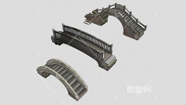 三款中式仿古石拱桥SU模型下载_sketchup草图大师SKP模型
