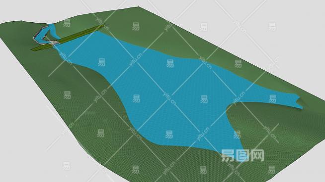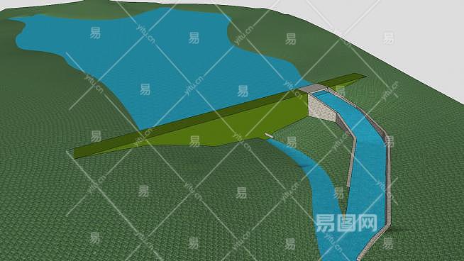 湖泊大坝地形SU模型下载_sketchup草图大师SKP模型