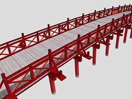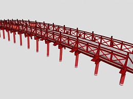 中式红色护栏弧形景观木桥SU模型下载_sketchup草图大师SKP模型