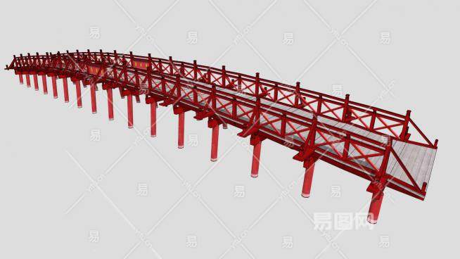 这是中式红色护栏弧形景观木SU模型,木以天然木材作为主要建造材料的梁。由于木材分布较广,取材容易,而且采伐加工不需要复杂工具。中式红色护栏弧形景观木SU模型下载_sketchup图大师SKP模型