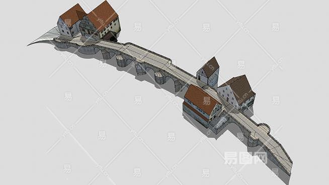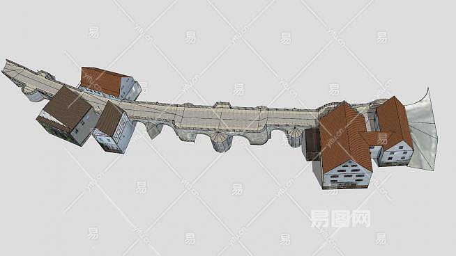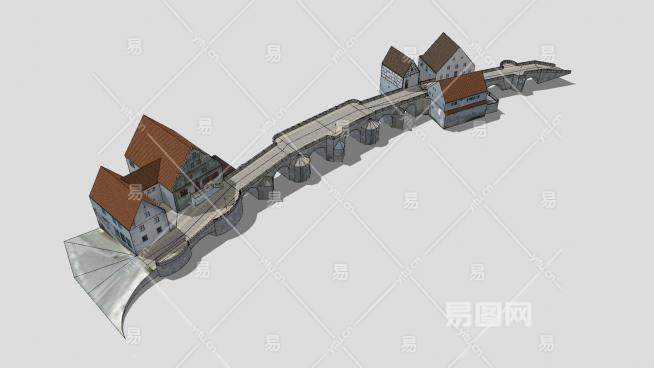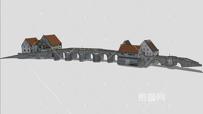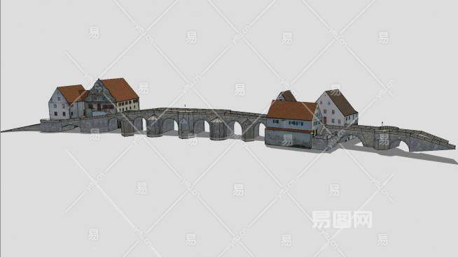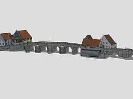 德国哈堡石桥和房屋SU模型下载_sketchup草图大师SKP模型