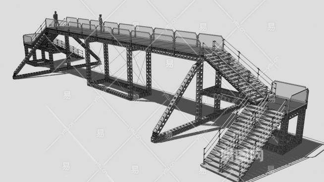 桁架搭建的人行天桥SU模型下载_sketchup草图大师SKP模型