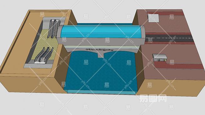 廊道河道桥梁SU模型下载_sketchup草图大师SKP模型